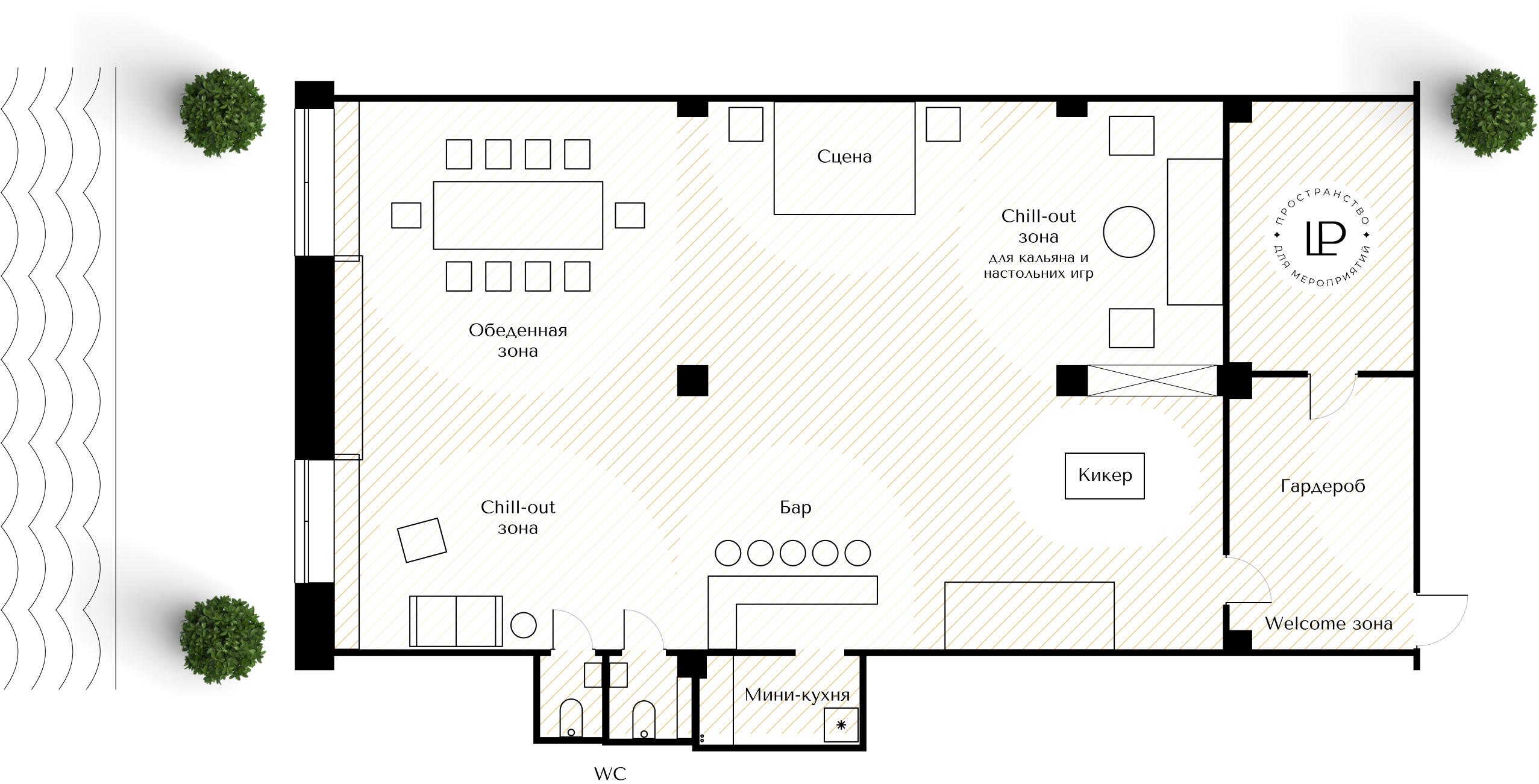 - Мини-кухня (микроволновая печь, холодильник, кулер)